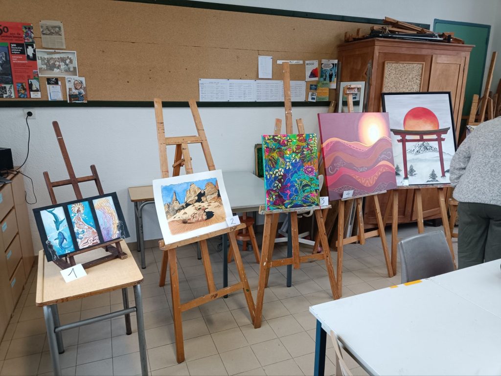 Last weekend, being the first weekend in September, was filled with “forums d’associations”; each town and village hosts one of these events, when each association, or club, is allotted a table, sometimes in a sports hall, sometimes in an outdoor public area, to inform public of their existence and to try to boost membership. Most stands are filled with flyers and other stuff to demonstrate what the club is about. I helped man the stand of the painting club in St. Paul; our stall was rubbish to look at, as the president had forgotten to bring the banner, any cards or flyers, and had only brought one, very dark painting. I don’t know if we signed anyone up, but I found a Pilates class, thanks to the stall next door, that I’ll give a try.