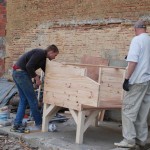 By the time we got home, Kieran had finished plasterboarding the wall to divide off the new bathroom and had finished the woodwork on the hen house! He and Nick went to put it in the chicken run, but found that it was too big to go through the gate and too heavy to lift over the fence, so they’ve had to dismantle part of the fence, which will have to be put back tomorrow. They had to visit website to learn more about fences. By the time they’d finished it was dark, so they were working by head torches.