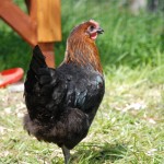 By the time we arrived home the weather had dried up, so we planted strawberries and did a bit of gardening, before spending about half an hour trying to encourage Flossy and Flappy, the big chickens, to use the ladder into the hen house. The little chickens are still segregated for their own safety, and are living in the old poulailler at the moment; they’ve finally emerged from their cardboad box and happily peck at bits of bread and corn.