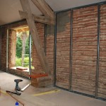 The lads have also built the wall that will be the edge of the kitchen and have attached the rails to the first wall; next comes the insulation and plasterboard.