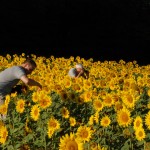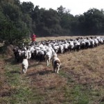 There’s just one shepherd left in the South West of France, who walks his sheep in the traditional manner all the way from the Pyrenees to near Bordeaux every autumn. He’s something of a reluctant celebrity as every village he passes through provides a meal and, where necessary, a bed for the night. We went along to see the transhumance, as it’s known, where it passed near to us. It was a morning stop, so trestle tables had been laid out in the forest, with an amazing breakfast; breads and cheeses, salamis and hams, hard boiled eggs, cakes, fruit juices, coffee and, inevitably, red wine, for the gathering of locals and the odd tourist. It was a very relaxed atmosphere as everyone tucked in, then Stephane headed off with his sheep and several people who take leave from their jobs each year to accompany him for at least part of the journey. I think Nick could quite fancy a life like that!
