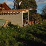 Nick picked me up from Bergerac airport last night; by the time we’d found somewhere to eat and driven home it was midnight, so I had to wait till this morning to see what he’d spent his time doing. He’s made progress on the plasterboard filling – the end is now in sight, as well as starting to make the worktop and storage for my workroom, parking up the digger under the abri for the winter, sorting a load of firewood, doing some gardening and even cleaning the kitchen for my return! Will miracles never cease!