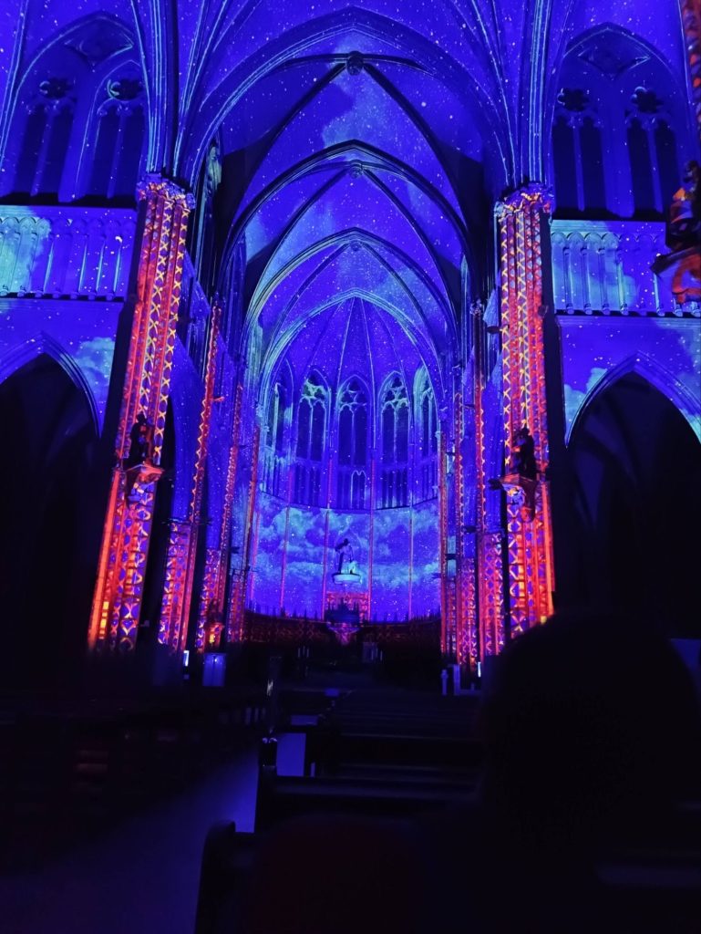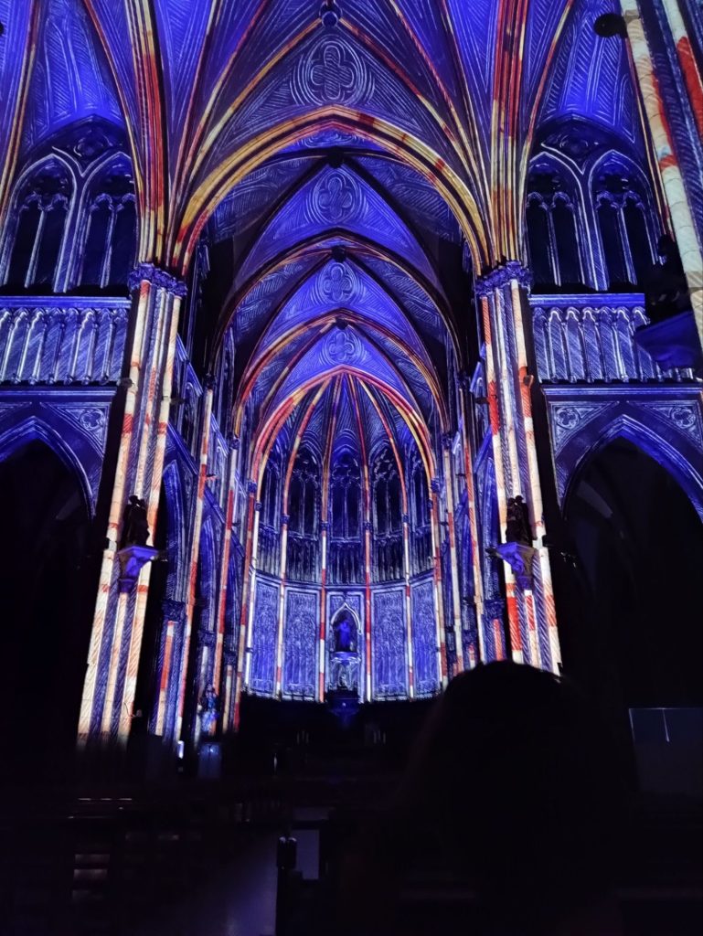 Jan has an old friend who lives in the town; when we met up with her she suggested that we get tickets for a sound and light spectacular at the cathedral. It was breathtaking! The whole place was in darkness when the music started, swiftly followed by light projected onto the walls and ceiling with unbelievable precision. The history of the town and the cathedral was narrated while we sat, open mouthed, watching the incredible light show all around. It was truly spectacular. I took a video, I think there’s a way of putting it on here, using YouTube, so I’ll have a go – but no promises! Here are a few photos, in case it doesn’t work.