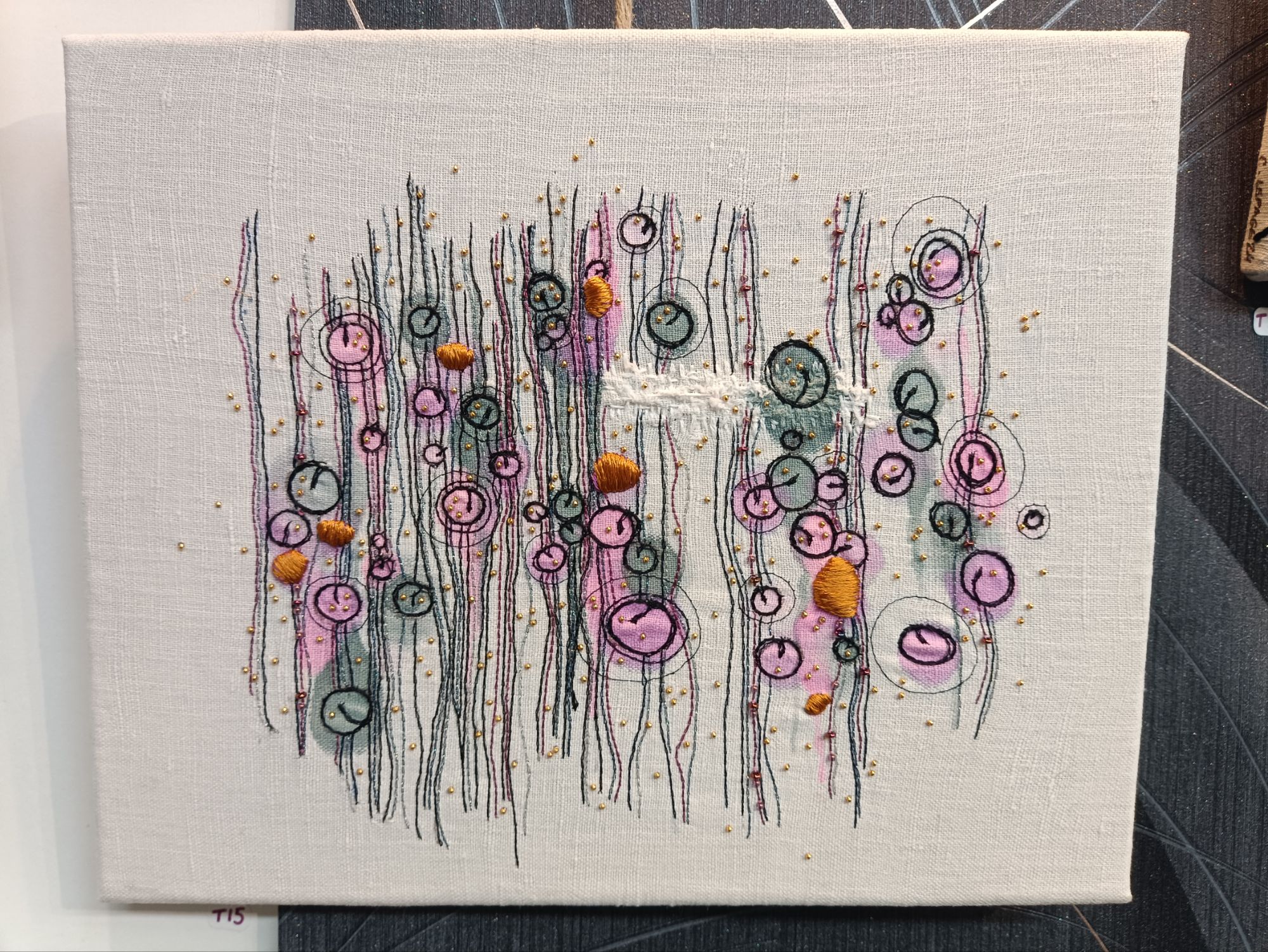 However, we needn’t have worried; most of the stalls were very interesting, selling fabrics, buttons, patterns, bag making kits and every kind of accessory imaginable for patchwork. There was also a decent exhibition of work, including from two well known textile artists, who were very happy to chat about their work. My brain was buzzing with ideas.