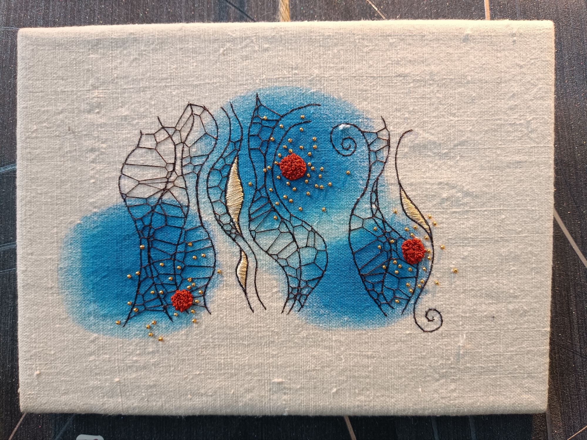 The date of the meeting to choose a painting for the poster was announced; could I finish in time? Yes, the base was done and I’d started the dots.